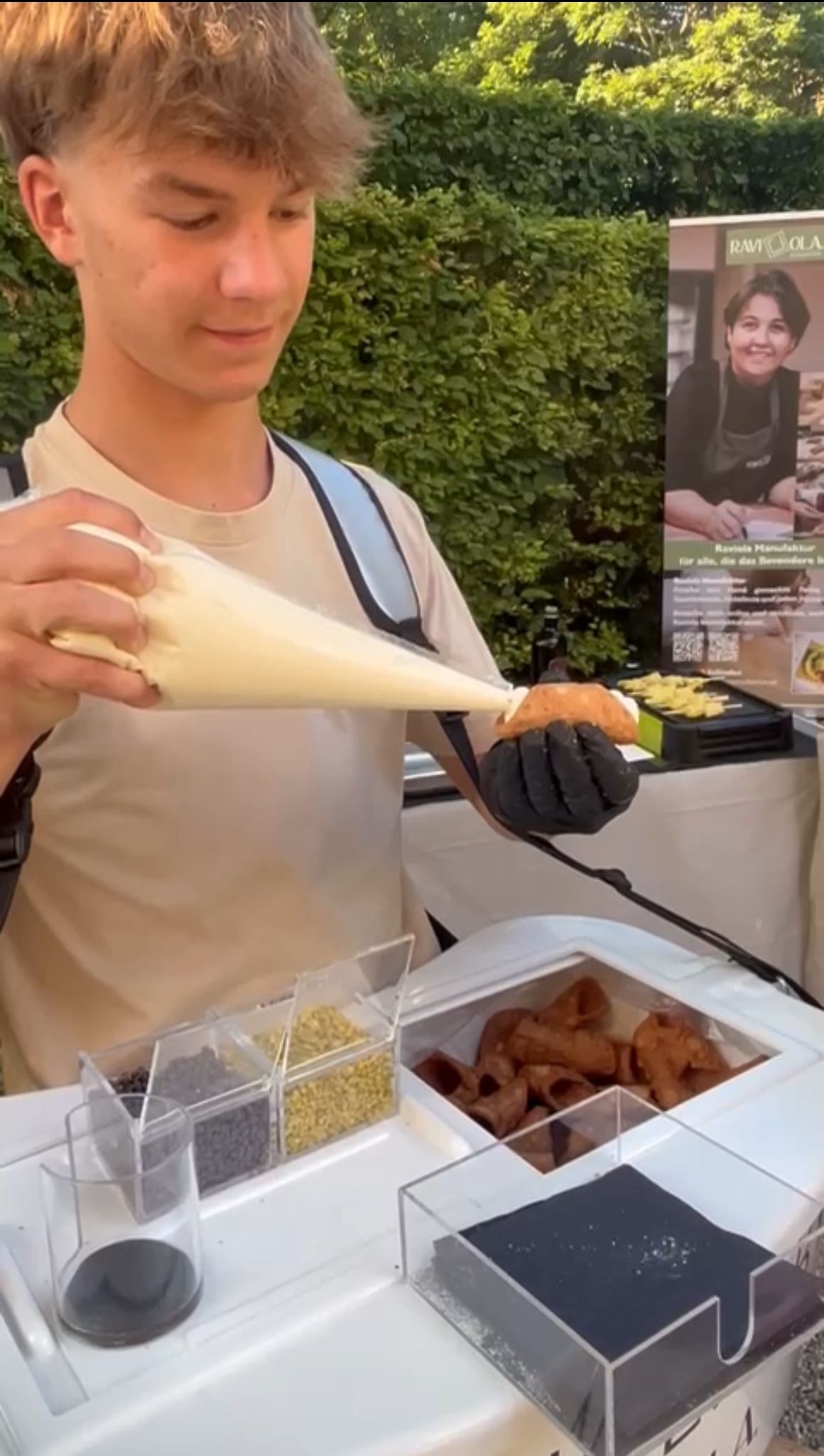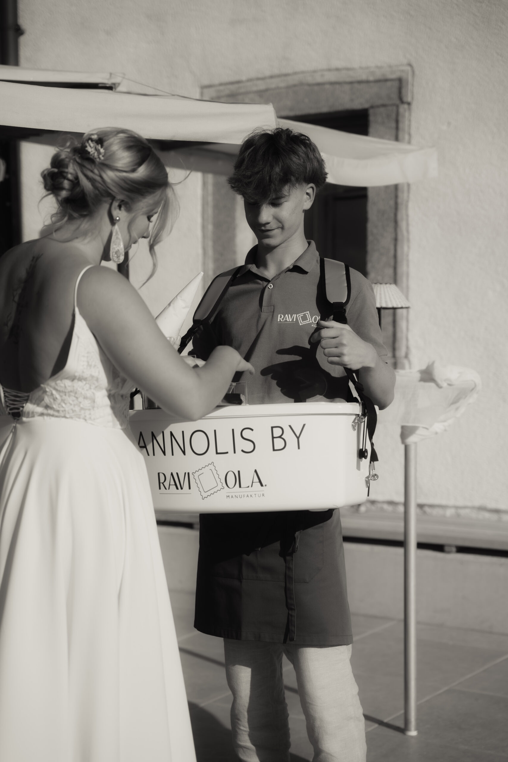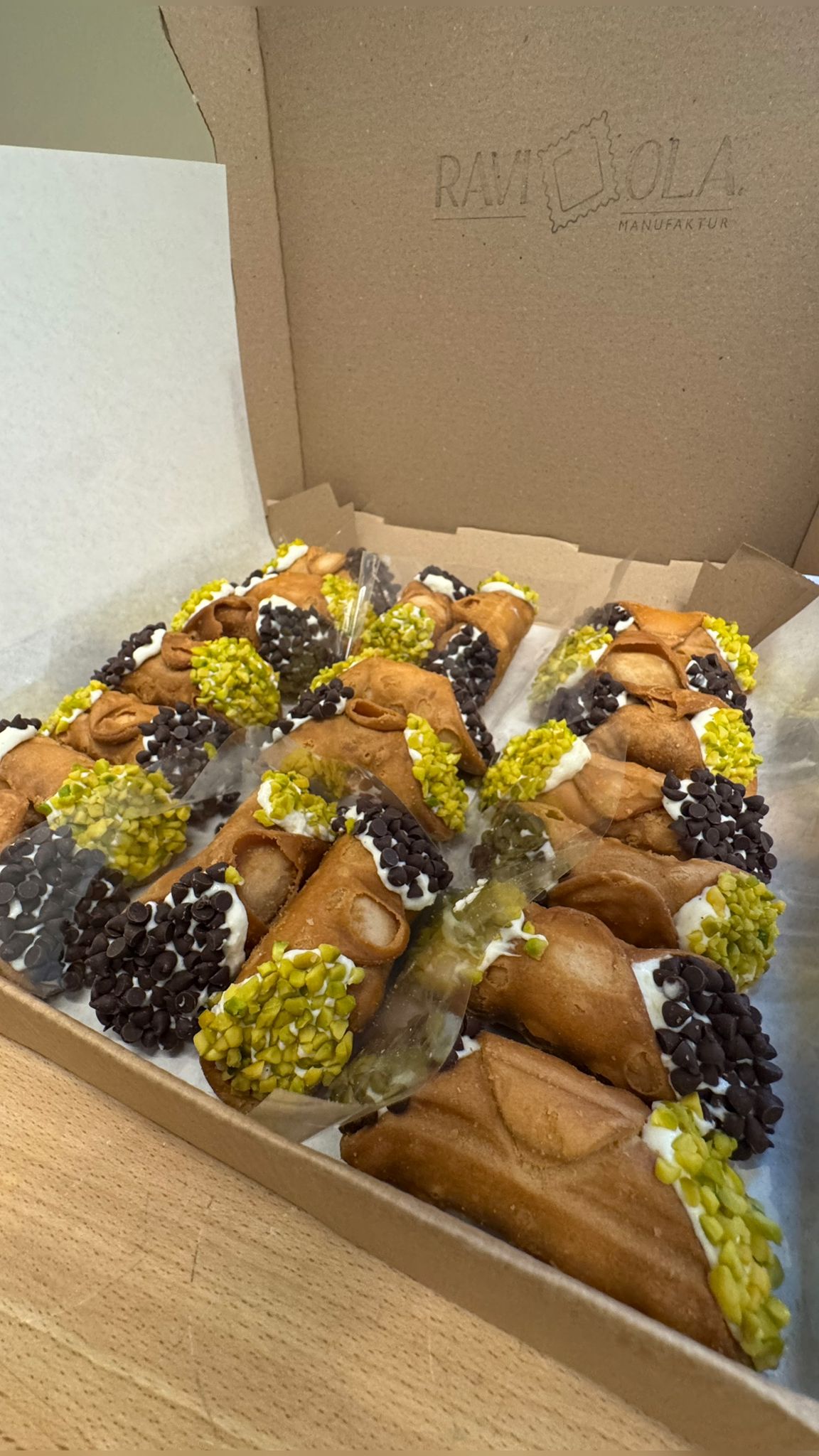 Unsere handgefüllten Cannolis werden direkt vor Ort und live vor euren Gästen zubereitet – ein echtes Erlebnis für Hochzeiten, Geburtstage, Firmenfeiern & mehr!