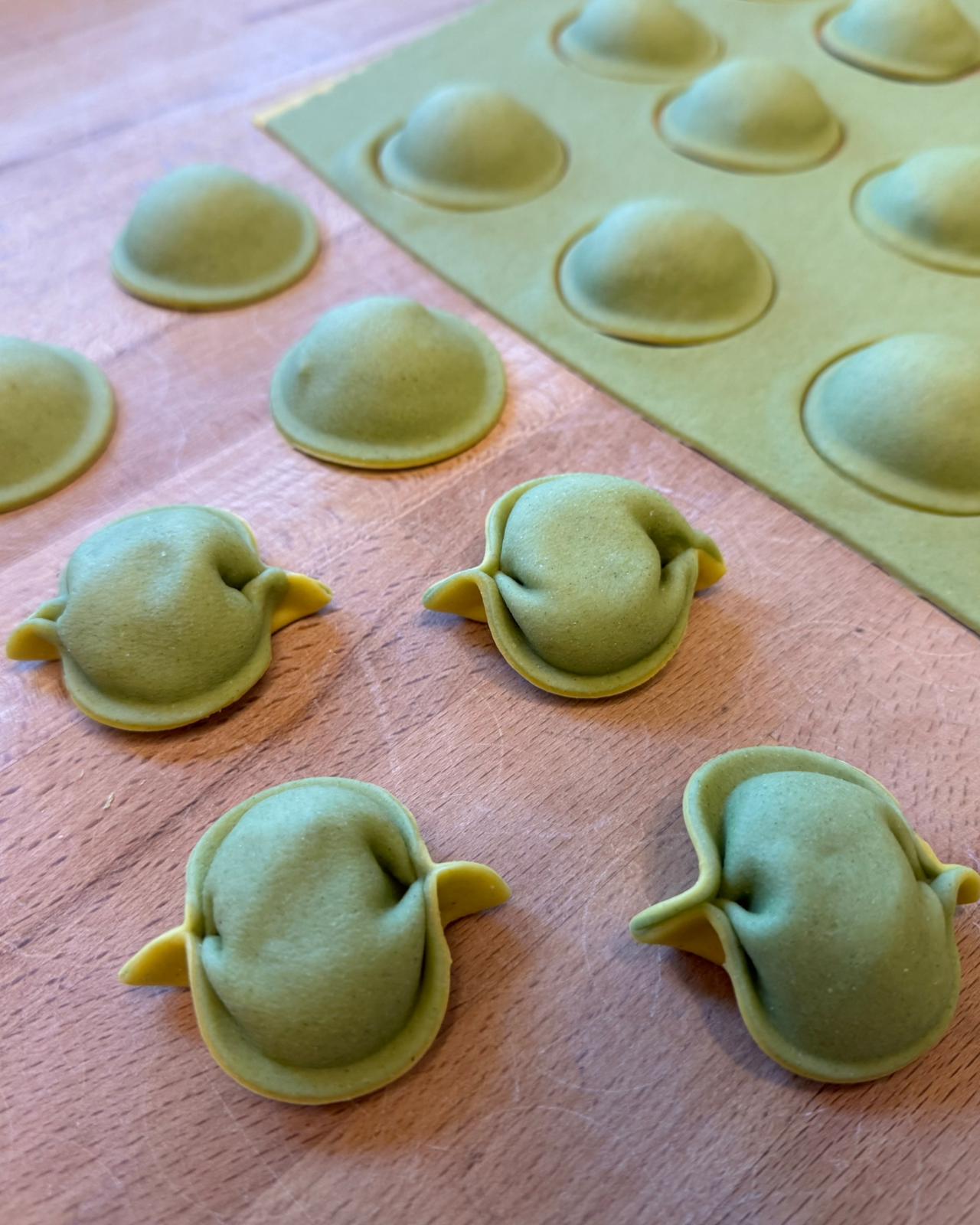 Unsere handgemachten Cappelletti mit grünem Spargel sind gefüllt mit einer feinen, cremigen Spargelmasse. Mild im Geschmack, frisch und ausgewogen – mit viel Sorgfalt handgemacht.