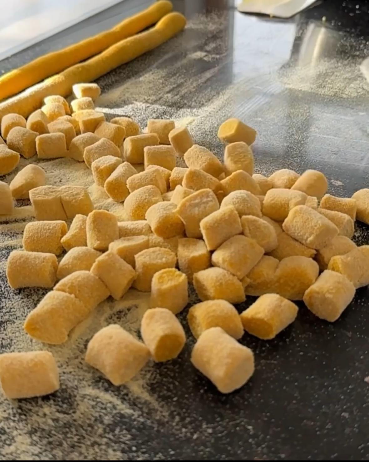 Die Erdäpfel Gnocchi werden traditionell handgefertigt und überzeugen durch ihre feine, flaumige Konsistenz. In der klassischen Variante aus Erdäpfeln und Mehl entstehen weiche, leichte Gnocchi mit authentischem Geschmack. Wer es etwas herzhafter mag, wählt die Version mit Dinkelmehl – leicht nussig im Aroma und besonders bekömmlich.