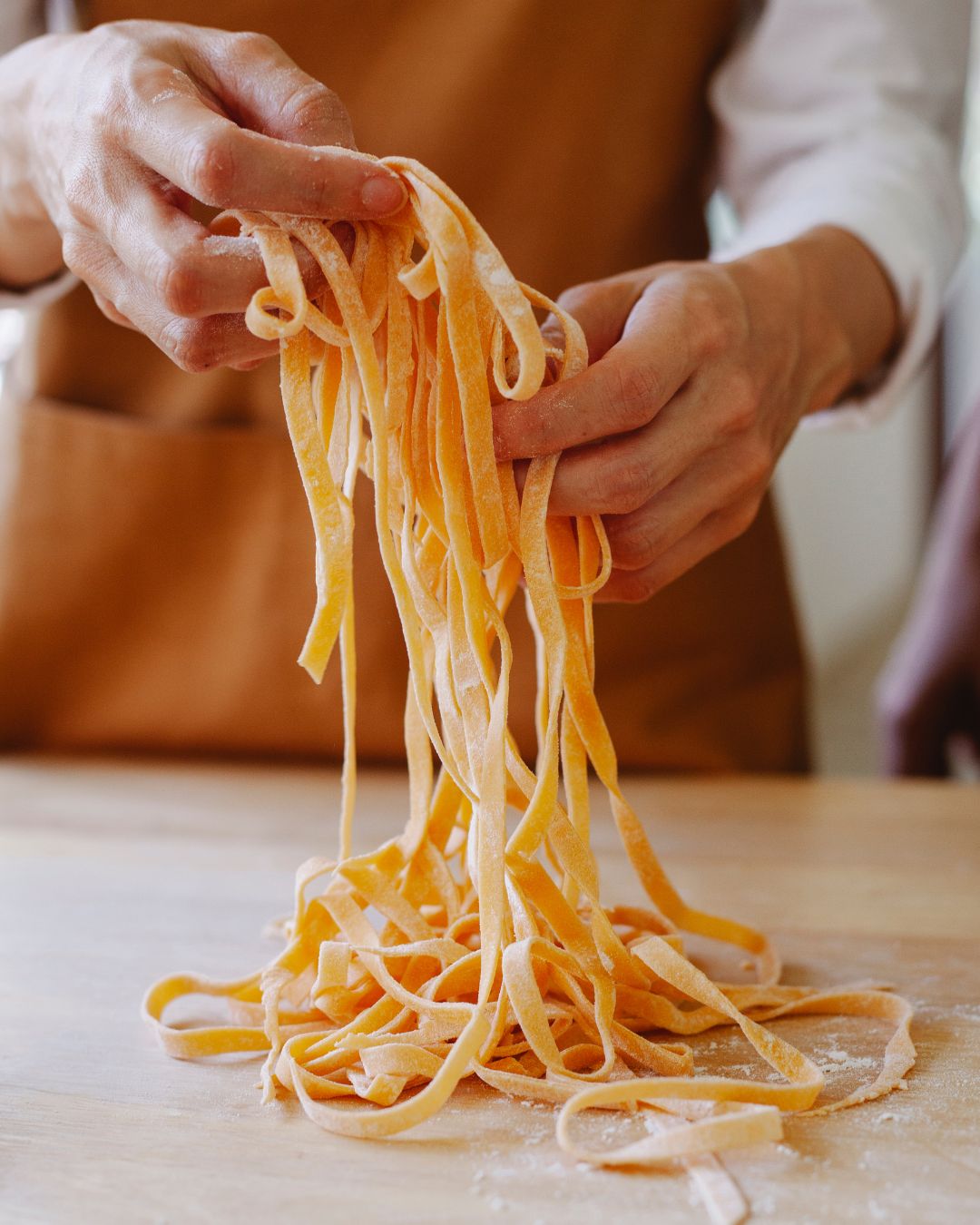 Unsere Fettuccine werden nach traditioneller Handwerkskunst gefertigt. Flach, zart und mit perfekter Bissfestigkeit – ideal für jede Sauce. Die samtige Textur sorgt dafür, dass aromatische Sugos besonders gut haften und jede Gabel zu einem kleinen Fest wird.