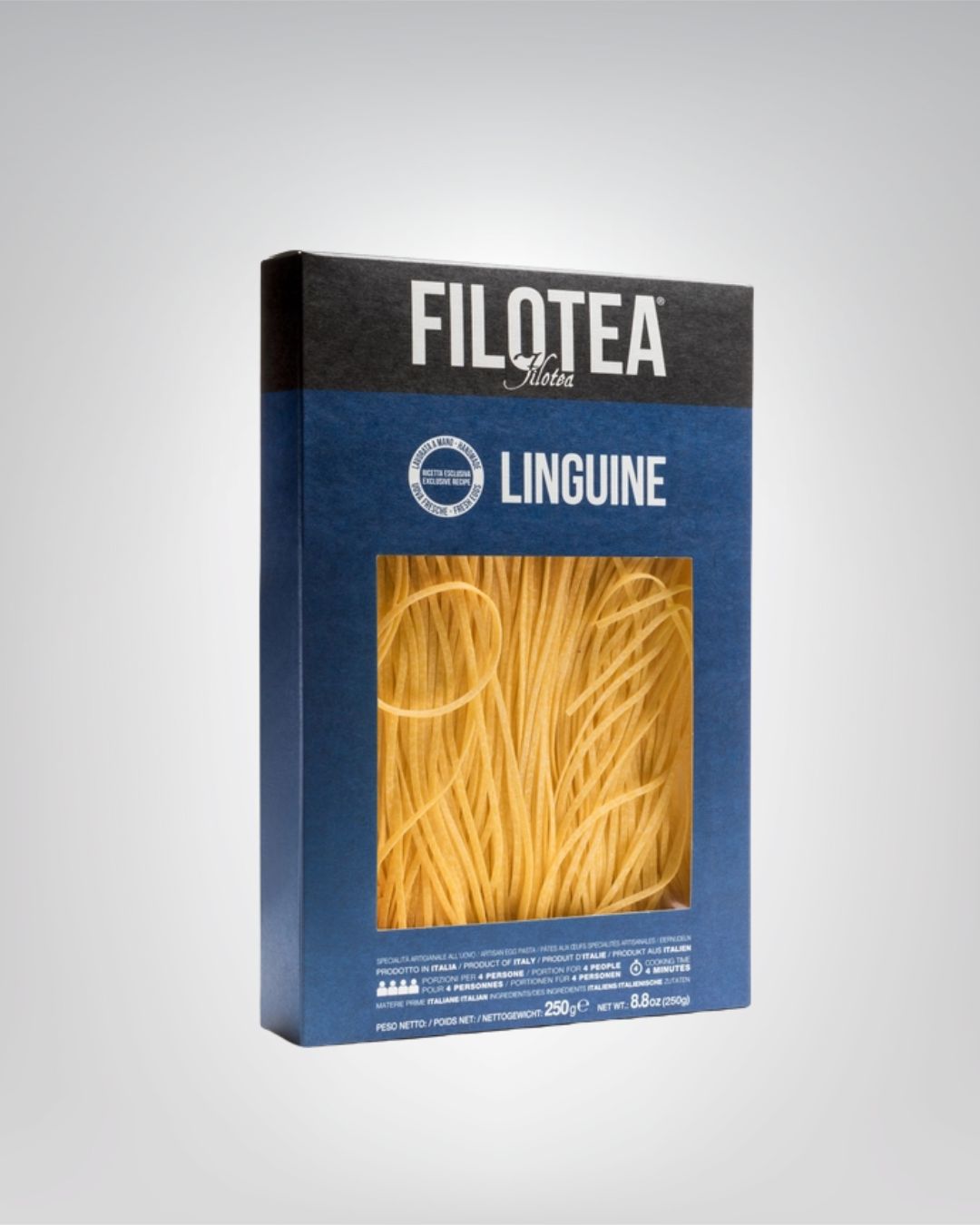 Diese Artisan-Linguine werden nach klassischer Filotea-Tradition hergestellt und spiegeln die Nähe zur hausgemachten Pasta wider. Hochwertige Zutaten, frische Eier und sorgfältige Verarbeitung stehen im Mittelpunkt.