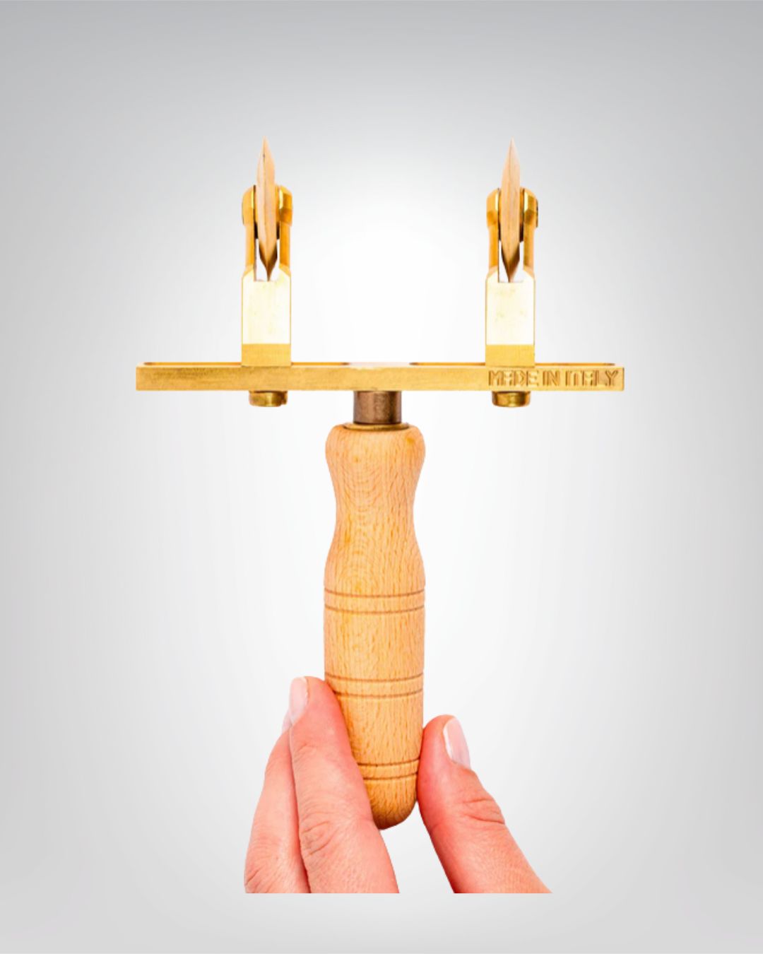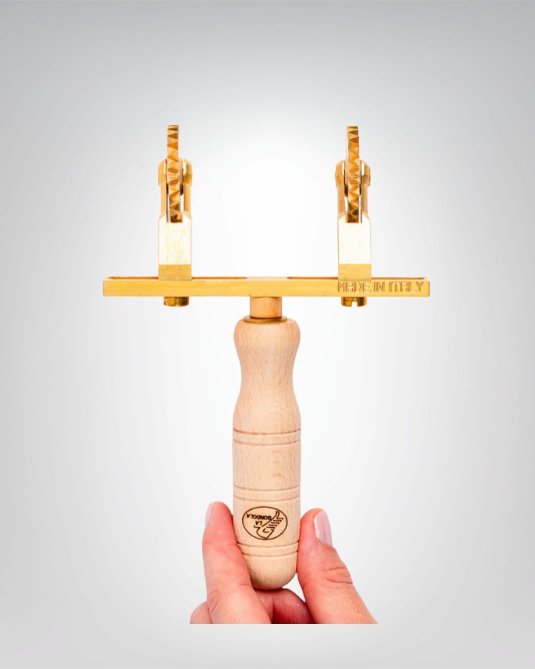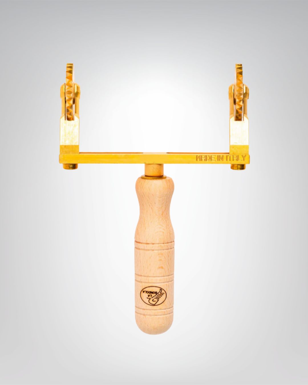 Professioneller, verstellbarer Nudelschneider mit 2 geriffelten Rädern aus Messing und Naturholz. Echte handwerkliche Herstellung, Made in Italy .
