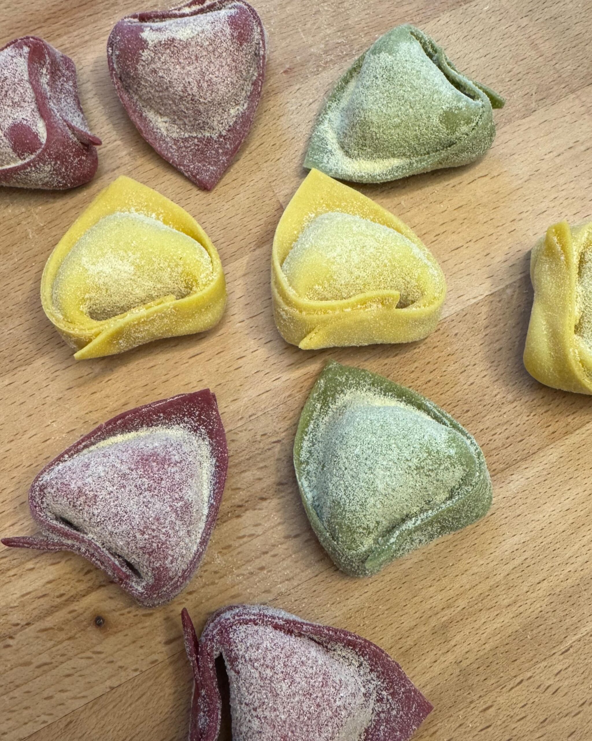 Pro Person rechnet man etwa 100 – 150g als Vorspeise oder zwischen 150 – 200g als Hauptgericht. Frische Pasta sollte stets gekühlt gelagert und möglichst am Tag des Kaufs genossen oder direkt eingefroren werden. Für das Kochen gilt: etwa 1 Liter Wasser pro 100 g Pasta verwenden und erst salzen, wenn das Wasser kocht. Öl ist überflüssig – wichtig ist, dass die Pasta genug Platz zum Zirkulieren hat. Während des Kochens löst sich Stärke, die das Wasser leicht trübt und ideal ist, um Saucen zu binden. Ravioli werden portionsweise 7–13 Minuten sanft gekocht und anschließend direkt in die fertige Sauce gegeben. Gefüllte Pasta lässt sich hervorragend einfrieren und kann ohne Auftauen ins kochende Wasser gegeben werden – die Kochzeit verlängert sich dann um wenige Minuten.