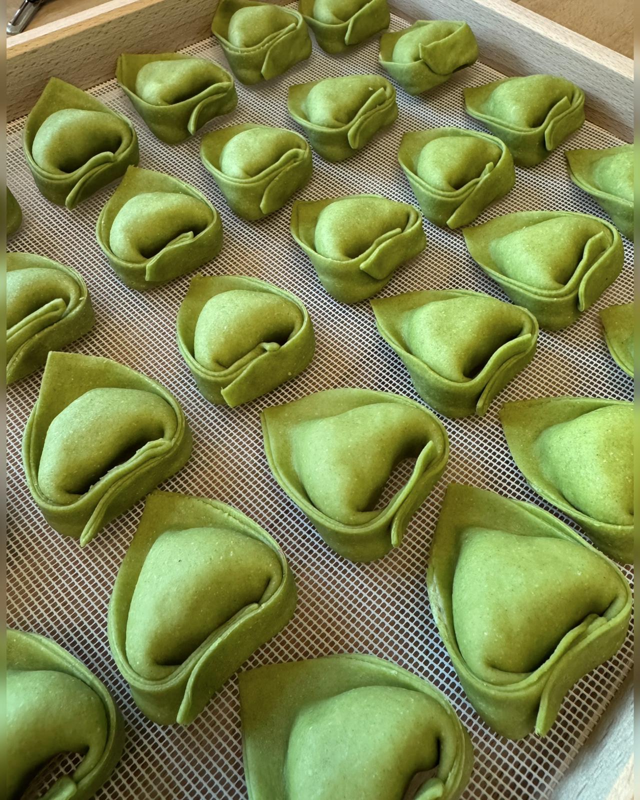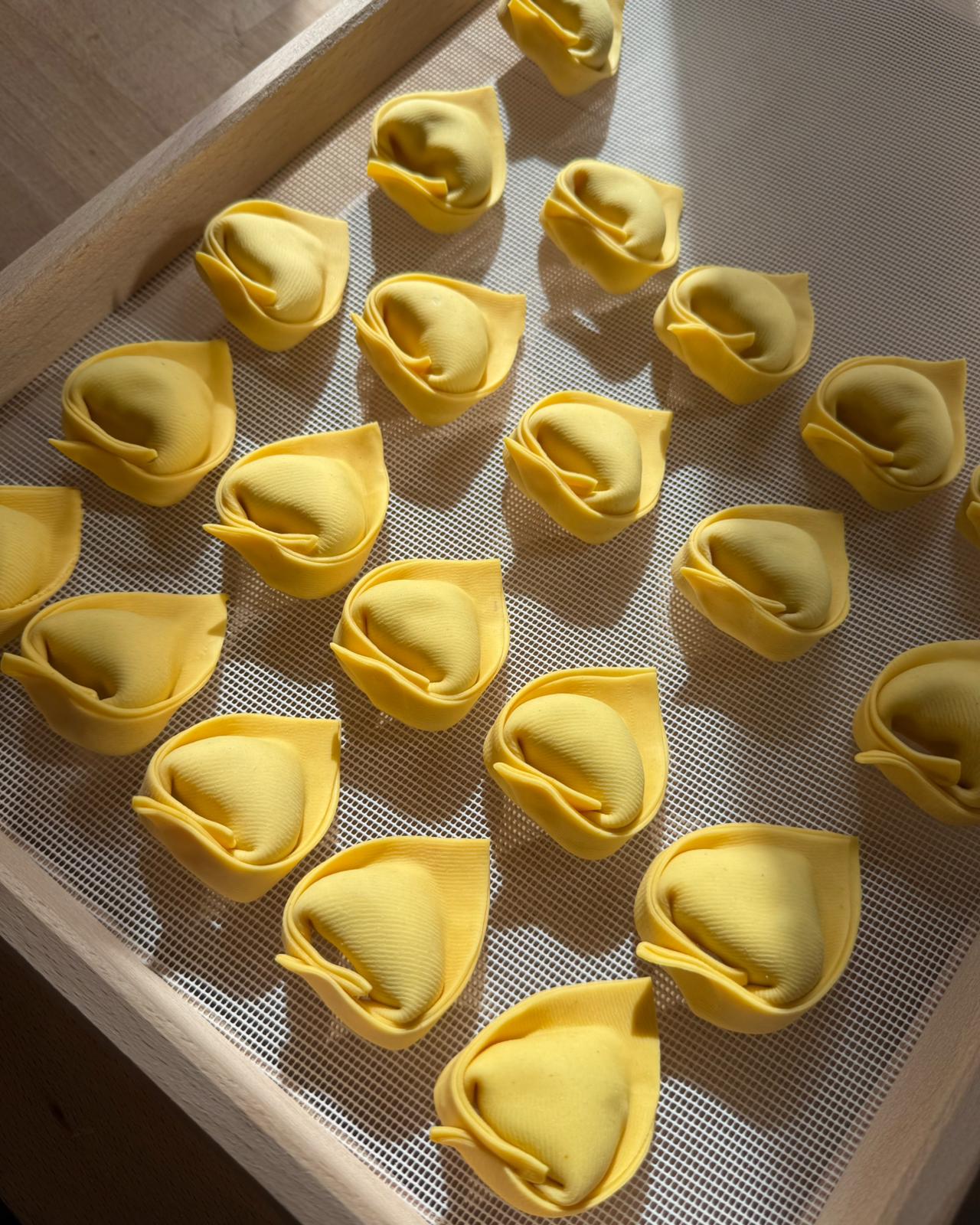 Handgeformte Pasta mit der Essenz des italienischen Sommers: Eine cremige Füllung aus sonnengereiften Tomaten, mildem Mozzarella und frischem Basilikum. Mediterrane Frische in Manufaktur-Qualität – harmonisch, fruchtig und zeitlos gut.