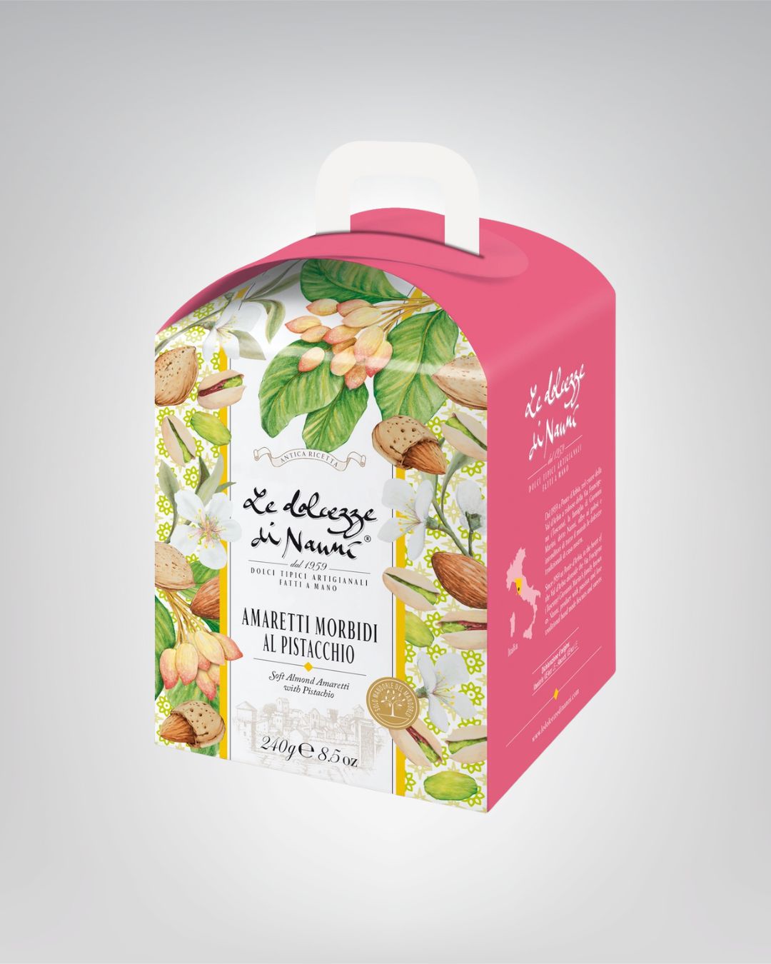 Diese traditionellen Amaretti morbidi aus der Toskana werden von Le Dolcezze di Nanni mit ausgewählten Mandeln und feinen Pistazien liebevoll von Hand hergestellt.